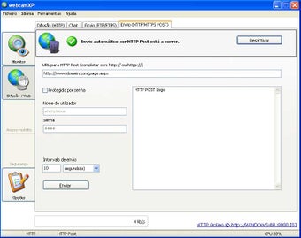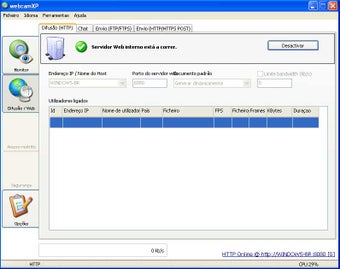 Com o webcamXP você pode emitir para outras pessoas as imagens capturadas por uma webcam. Defina a fonte emissora de imagens e outros detalhes na aba “Monitor”. A aba “Difusão/Web” reúne as ferramentas necessárias para controlar a emissão da webcam e o acesso dos visitantes mediante autenticação.
