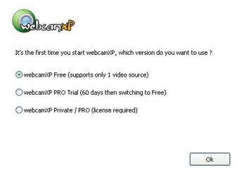 O webcamXP tem três tipos de licença diferentes. O arquivo de instalação é o mesmo e é necessário escolher que tipo você prefere usar na primeira vez que rodar o programa. A versão gratuita permite usar apenas uma webcam de cada vez. Com a versão paga (Pro) do webcamXP é possível utilizar várias ao mesmo tempo.